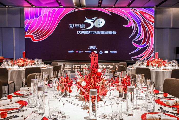 日前,洲际酒店集团旗下高端中餐品牌彩丰楼在大中华区突破50家的同时,宣布品牌焕新升级,以充满美好寓意的“彩凤献吉”为设计灵感,围绕“听、视、味、嗅、触”五感体验和待客之道,打造属于彩丰楼的独特风格。