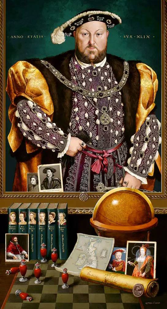 这是美国当代画家 Jenness Cortez 的一幅“画中画”,作品里隐藏了太多重要的信息,其中不乏欧洲宫廷故事、王室与教廷的纷争、甚至英格兰都铎王朝更迭兴衰的暗线也呼之欲出。