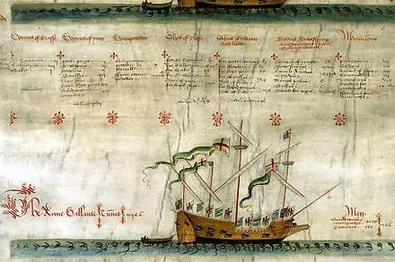 安东尼书卷详述描述了1540年代的英国都铎海军,名称取自著作作者姓名安东尼。书卷材质为牛皮,内容则以图文并茂方式描绘都铎王朝所属58艘海军舰艇形制、船员配置、装备和船上基本设施。1546年,安东尼卷已由作者呈交给国王亨利八世,并收藏于当时的皇家图书馆。安东尼书卷最为人称道的是非常准确的船舶插图,尤其是都铎时期纹章,旗帜和船舶装饰。经过后来的打捞考古实物比较,更证明其真实性与可贵。