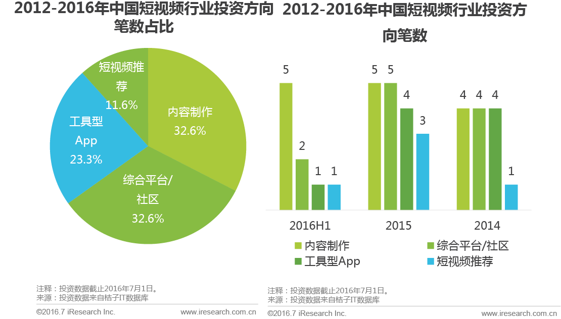 ▌短视频行业内容制作、综合平台/社区成为两大热门投资方向