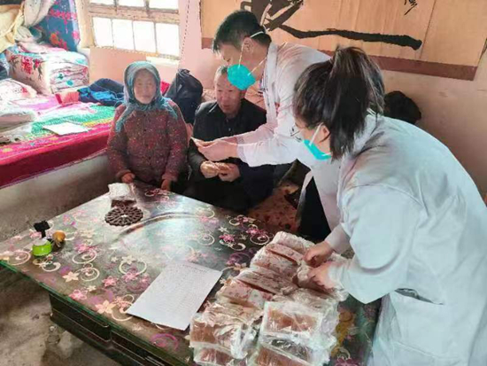 甘肃省武威市古浪县定宁镇基层医生送药上门。受访者供图