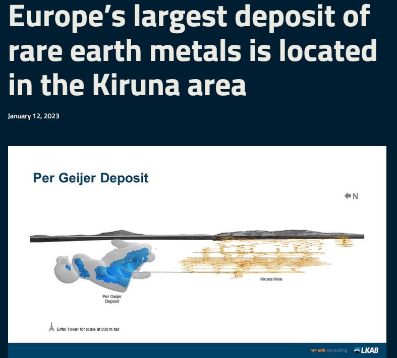 当地时间1月12日,LKAB公司在官网发布公告,宣布在瑞典北部、北极圈以北的基律纳发现了稀土矿床。该矿床有超过100万吨稀土氧化物矿产资源,是欧洲已知的最大稀土矿床。