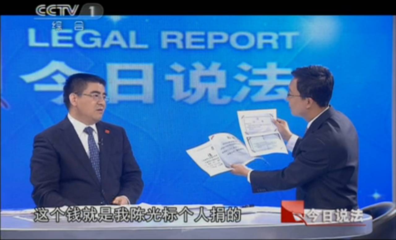 ▲ 2011年4月底,陈光标在《今日说法》上“澄清”媒体对他的质疑。