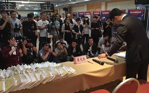 一切仿佛重演。9月20日,财新、网易等媒体陆续发表对陈光标的调查报道,继续质疑捐赠信息。23日,陈光标召开“新闻发布会”,全程没有回答记者任何问题。现场桌面上摆放了半桌票据,称“财务的原始原件,都在上面。复印件都在二面,你们(记者)自己拿去统计”。
