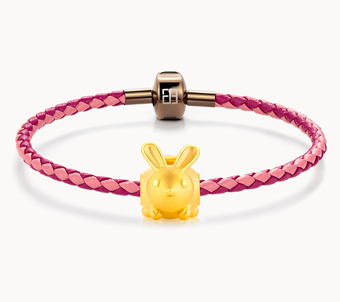 金饰品牌周生生打造了兔闪闪、招财兔、福袋兔、胡萝卜兔、奶萌兔、发发兔、有钱兔等多款兔子形象的Charme系列黄金转运珠,可以进行叠戴与搭配。Charme系列使用无氰硬金电铸工艺,在保证黄金的纯度下,也可以提高硬度及可塑性,可以让串珠不易变形。生肖兔戒指中,“有钱兔”戒指以可爱萌趣的兔子为设计蓝本,打造兔子抱住铜钱的造型,寓意招财进宝,代表新的一年财源滚滚。