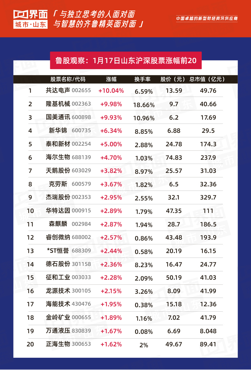 山东上市公司热点: