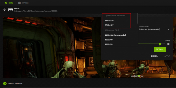 尽管如此,你并不需要为了获得好的截图而升级到4K显示器。在图片为了适应你的显示屏而缩小尺寸之前,把它捕获下来,这样你就可以用一般的1920x1080旧显示器得到4K(或者更高)画质的截图啦!这一过程叫做缩减像素采样(downsampling)或者超级采样(super sampling),但是显卡软件实现厂商又有不同的叫法,AMD把它叫做虚拟超级分辨率(Virtual Super Resolution,缩写VSR),Nvidia把它叫做动态超级分辨率(Dynamic Super Resolution,缩写DSR)。