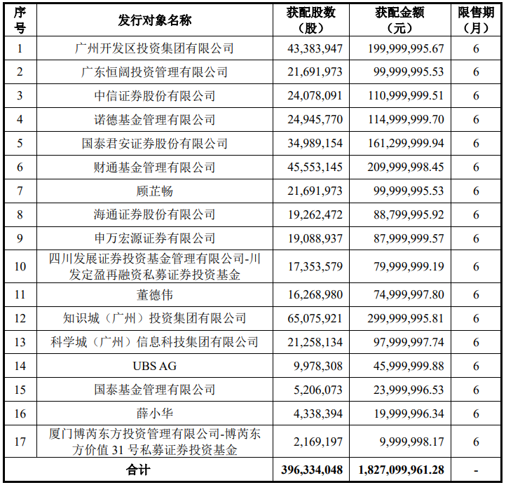 佳都科技1月18日发布非公开发行股票发行情况报告书,确定此次发行价为4.61元/股,此次非公开发行股票数量为3.96亿股,募集资金总额约18.27亿元,发行对象最终确定为17名。财通基金获配2.10亿元,国泰君安获配1.61亿元,中信证券获配1.11亿元。