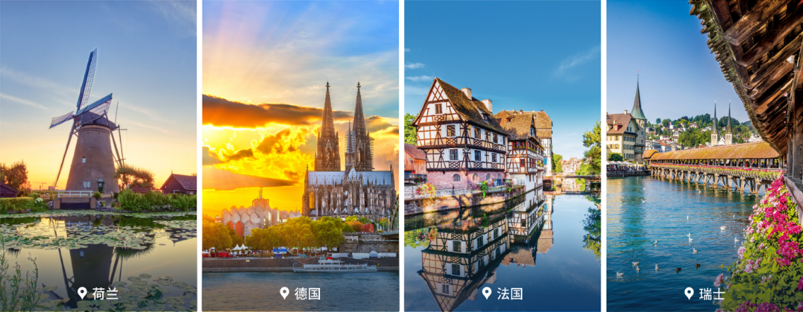 “11日莱茵河魅力之旅”是美景与文化交融的欧洲名河之旅,游客将沿着莱茵河探索4国9个目的地——漫步于德国到法国的传奇中世纪城镇,参观历史悠久的古堡、大教堂等名胜古迹,包括集宏伟与细腻于一身并被誉为哥特式教堂建筑中最完美典范的科隆大教堂;尽览被列为世界文化遗产的莱茵河中段风光与两岸古老城堡;探索荷兰阿姆斯特丹的运河与小孩堤防的风车奇观;沉醉在童话般的阿尔萨斯地区小镇民俗风情;悠游风景优美的瑞士城市,感受巴塞尔多彩的博物馆文化,享受琉森举世闻名的湖光山色。