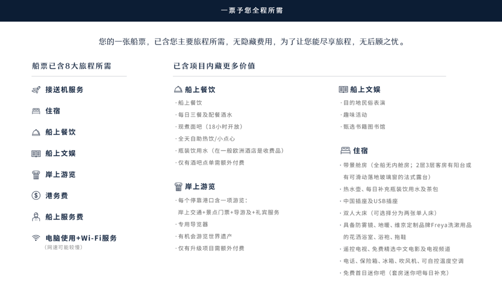 与此同时,维京游轮标志性的“一价全包”船票价格政策也保持不变,但已含项目会稍作调整,以配合维京游轮全球市场的运营标准并确保其统一性。