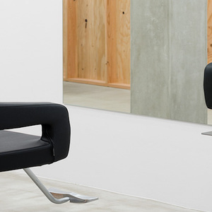 别担心整个空间会因此太过惨淡。展览区块里设计感十足的吊灯和连座椅为“惨淡”的氛围添加了一些活力。另外,门面也延续了整个空间的极简风和设计感。路人走过路过应该都不会错过这个混搭理发店。