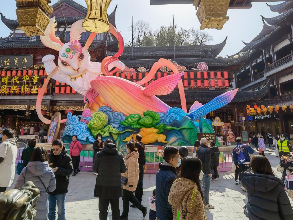 农历兔年伊始,南京市民朱杰一家驱车来到上海,计划待上4天至5天。朱杰笑称:“10岁的女儿心心念念要买上海豫园的兔子灯、要穿汉服,7岁的儿子对上海海昌海洋公园的奥特曼主题酒店特别好奇,妻子则要观看上海博物馆‘英国国家美术馆珍藏展’,这个春节我们可忙了。”