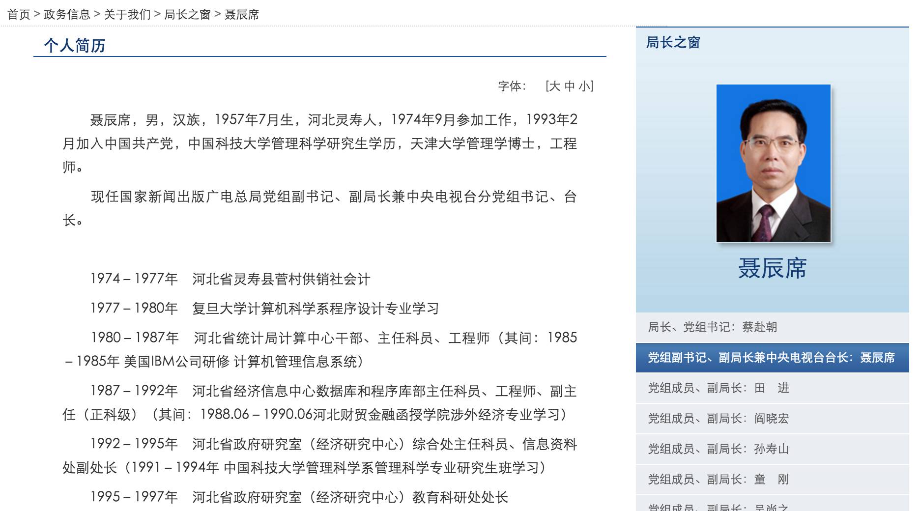 9月29日下午,多家媒体报道称,聂辰席接替蔡赴朝,出任中宣部副部长、国家新闻出版广电总局局长、党组书记、国家版权局局长。不过,《三声》(微信ID:Tosansheng)前往广电总局官网查看发现,截止9月29日晚上21点,官网显示的聂辰席职务仍然是国家新闻出版广电总局党组副书记、副局长兼中央电视台分党组书记、台长。