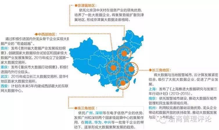 《纲要》里明确提出:2017年底形成跨部门数据资源共享共用格局,2018年底建成国家政府数据统一开放平台,2020年民生保障领域的政府数据向社会开放。在国家战略的引导下,长三角区域、京津冀区域、珠三角区域和中西部区域都以各自的区域优势资源为核心形成了大数据技术发展的框架和策略。