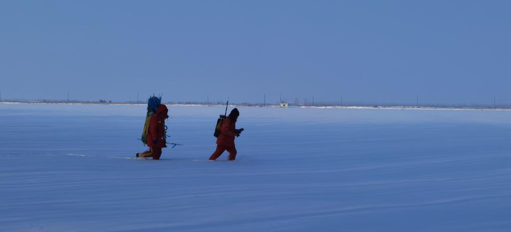 新春佳节,万家团圆。新疆准噶尔盆地南缘,零下26℃的茫茫雪原上,一个个穿越农田、灌渠、林带的红色身影格外醒目。及膝积雪中,中国石油集团东方地球物理勘探有限责任公司新疆物探处分公司(简称“新疆物探处”)275队的石油物探工人正艰难跋涉。