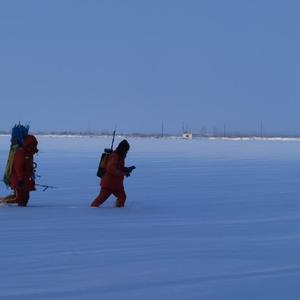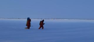 茫茫雪原中,物探工人艰难跋涉。(新华社记者顾煜 摄)
