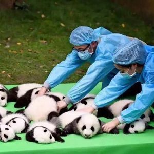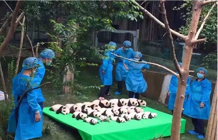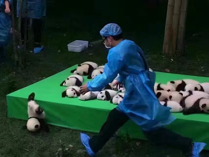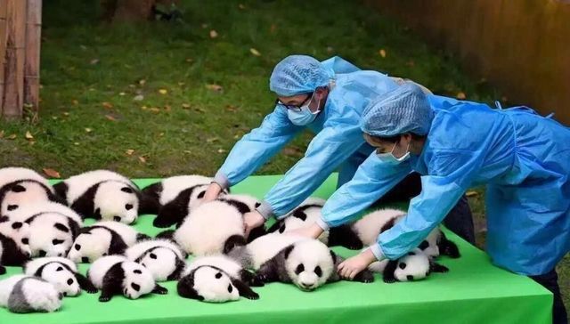 5. 成都熊猫繁殖研究基地的工作人员看着这些熊猫宝宝就像看着自己的孩子一样。