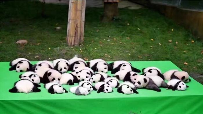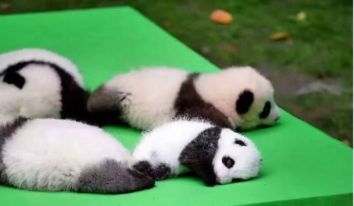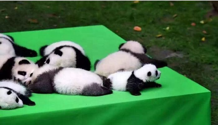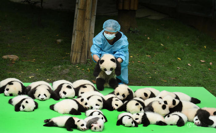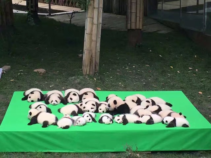 1. 9月29日,2016年新出生的23只大熊猫宝宝集体在成都大熊猫繁育研究基地亮相。大熊猫幼仔排排坐,在国庆来临之际,集体亮相与游客们见面。 这些圆滚滚熊猫幼崽又出来卖萌了,23只熊猫幼仔上演熊猫瘫。网友笑称这简直就是一地的芝麻汤圆。