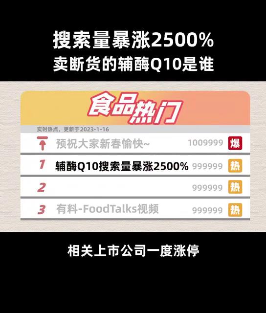 辅酶Q10搜索量暴涨2500%!卖断货的辅酶Q10是谁?