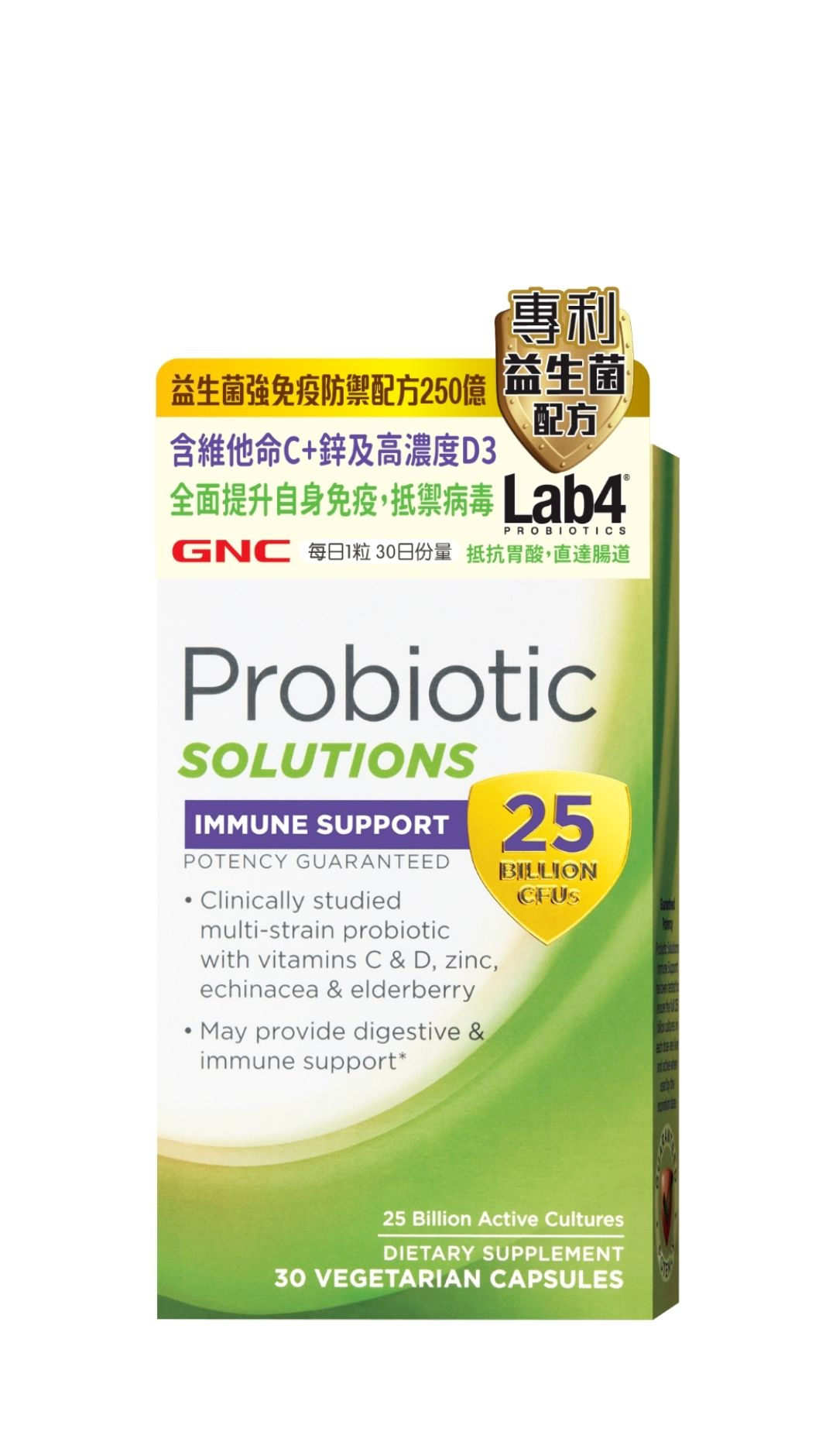 GNC推出了益生菌强免疫防御配方“250亿”,据其官网介绍称产品配方中添加了250亿专利Lab4益生菌,同时搭配高浓度维他命D3 1000IU和维他命C+锌来帮助增强防御力。