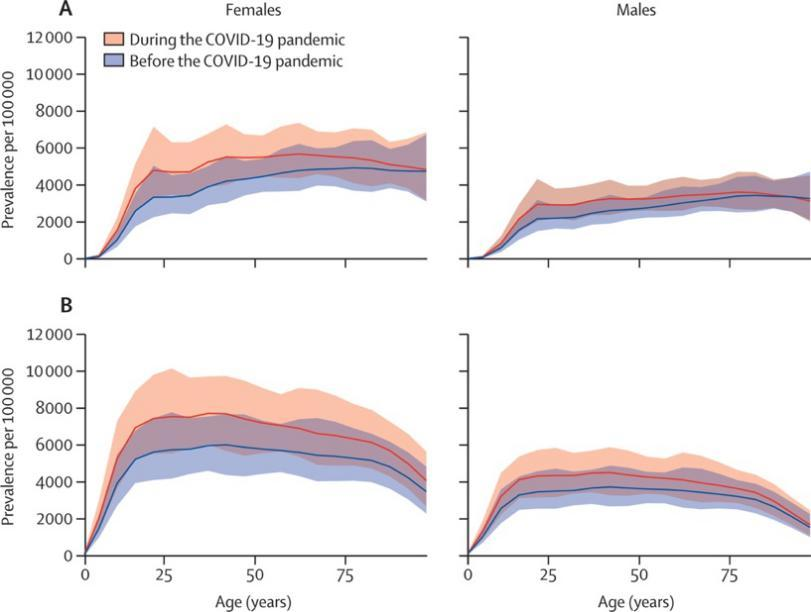 根据世界卫生组织报道,仅是COVID-19大流行的第一年就促使全球焦虑和抑郁患病率增加25%。其中年轻人的精神健康受到了很大影响,女性比男性更加严重。[1]