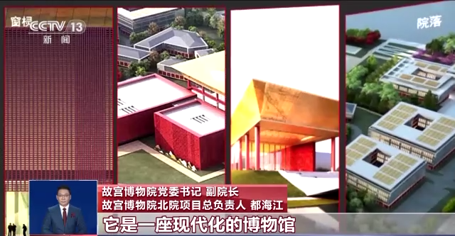 故宫博物院党委书记 副院长 故宫博物院北院项目总负责人 都海江:北院区项目不是采用把故宫的古建样式直接搬去的这种模式,它是一座现代化的博物馆,借鉴了故宫的一些元素,建成了以后应该说是一座简洁、厚重、大气的一座博物馆。