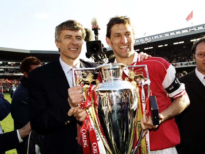 6. 效力枪手的20年间,作为后防领袖的亚当斯担任了14年的队长,并跟随枪手经历了三个不同时期的联赛冠军。他恰到时机的铲抢和阅读比赛的能力,无愧于“兵工厂先生”的称号。