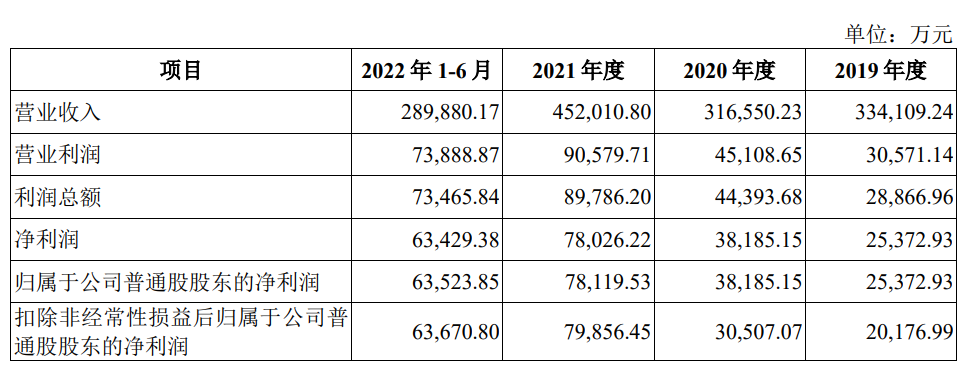 招股书显示,公司专业从事聚乙烯醇(PVA)、聚乙烯醇特种纤维、醋酸乙烯(VAC)、碳化钙(电石)等PVA产业链上下游产品的研发、生产、销售。2019年、2020年、2021年、2022年1-6月,公司实现营业收入33.41亿元、31.66亿元、45.2亿元和28.99亿元,同期实现归属于母公司股东的净利润分别为2.54亿元、3.82亿元、7.81亿元、6.35亿元。公司营业收入主要来源于聚乙烯醇、电石、醋酸乙烯和聚乙烯醇特种纤维,四者营业收入占比合计分别为92.07%、92.78%、93.92%和91.78%;聚乙烯醇和电石是公司最主要产品,报告期各期占收入比重最高且保持稳定,是公司收入主要来源。