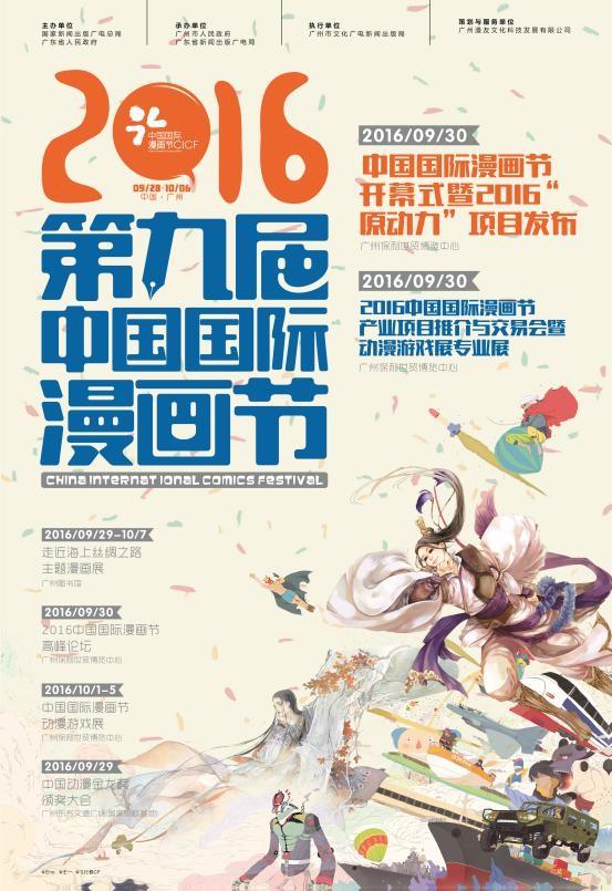 第九届中国国际漫画节9月30日正式开幕。本届漫画节将围绕“新丝路,大动漫”主题,设置鼓励原创、推介交易、娱乐消费、探讨交流、群众活动五大单元,活动内容包括“走近海上丝绸之路”主题漫画展、发布2016“原动力”中国原创动漫出版扶持计划入选名单、第13届中国动漫金龙奖颁奖大会、原创动漫出版融合发展座谈会、产业项目发布与交易等。本届漫画节将持续至10月5日。
