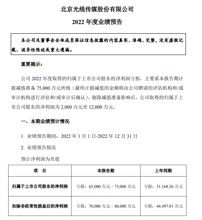 但是光线这浓眉大眼的优等生,2022年也意外亏损,预计亏损规模为6.3亿-7.3亿元。