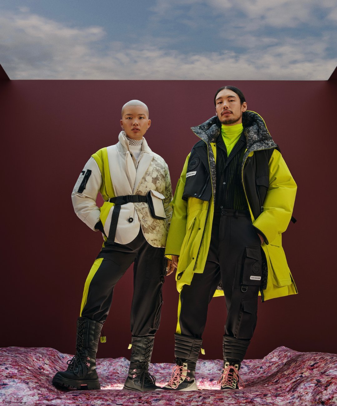 其中一种解决方案是和中国设计师进行合作。在2020年和2021年,加拿大鹅两次和中国设计师品牌Angel Chen进行合作,联名系列在当年上海时装周期间亮相。而在2022年,加拿大鹅又携手另一中国设计师品牌Feng Chen Wang,并邀请艺术家徐震共同参与设计。