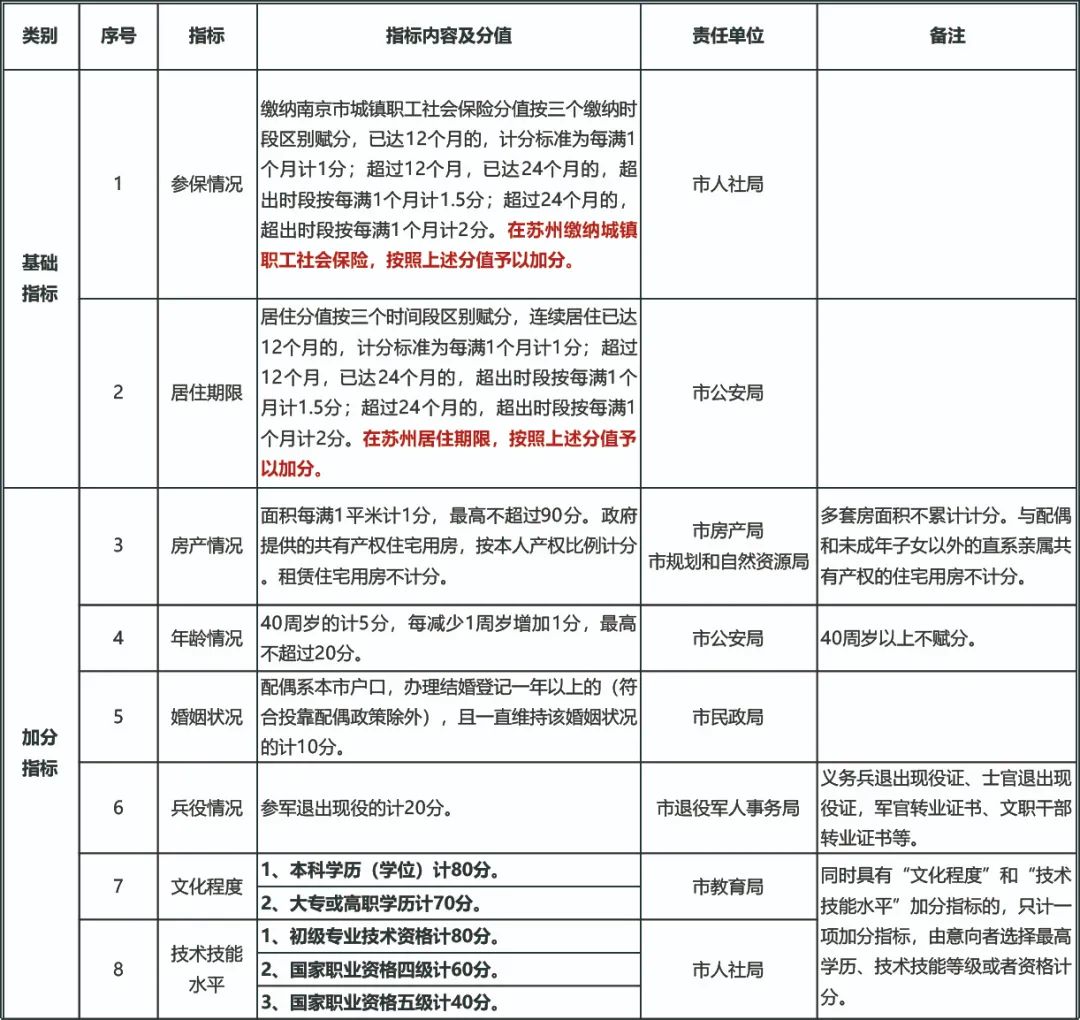 最值得关注的是,新的积分落户实施方法,对南京、苏州两地的居住和社保缴纳年限累计认可。即在苏州市参加城镇职工社会保险的,视为在南京市缴纳并赋分;在苏州市居住的,视为在南京市居住并赋分,该办法从2021年9月1日起实施。