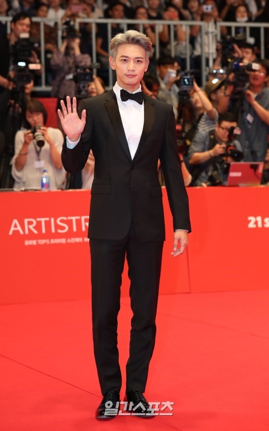 6. SHINee崔珉豪走上红毯,一头银发十分吸睛。