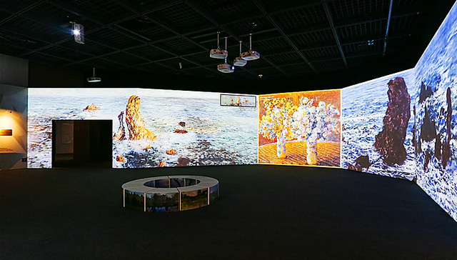 《印象莫奈》展有一点很吸引我,主办方利用多媒体感映技术,将作品以多媒体、灯光、音效等多重搭建的布展方式重新展现。