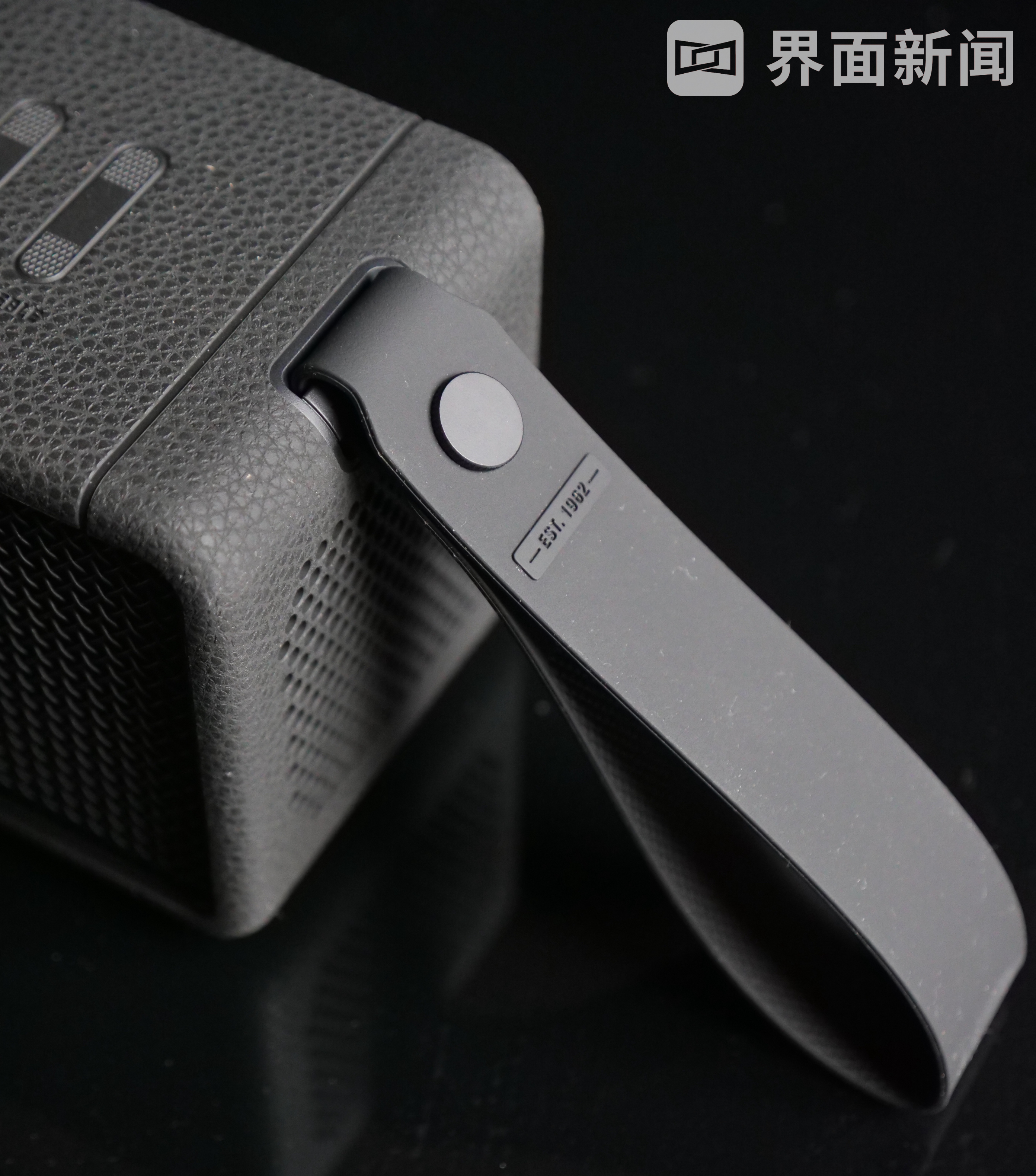 在一系列经典元素加持下,MIDDLETON主打便携,其“身材”略大于之前推出的Emberton,实际上手后单手拿起问题不大。此外,MIDDLETON提供了可拆卸手提带,可安装在音箱的右端,方便户外场景下使用。