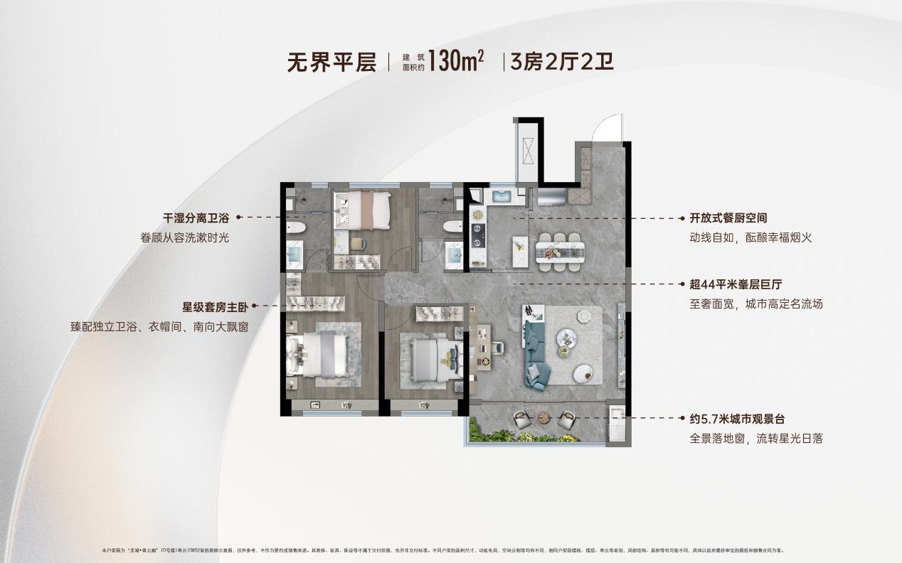 追求升级改善的家庭,会被这款户型打动。约40㎡层峯巨厅,款待全家雅聚时光;开放式餐厨空间,中西烹饪方式从容切换;主卧套房设计,全面屏瞰景飘窗+独立卫浴,带来酒店套房级尊享私密。约5.7m南向大阳台,在同面积段户型难得一见,无论是莳花弄草,抑或布置一方茶歇,都非常惬意。