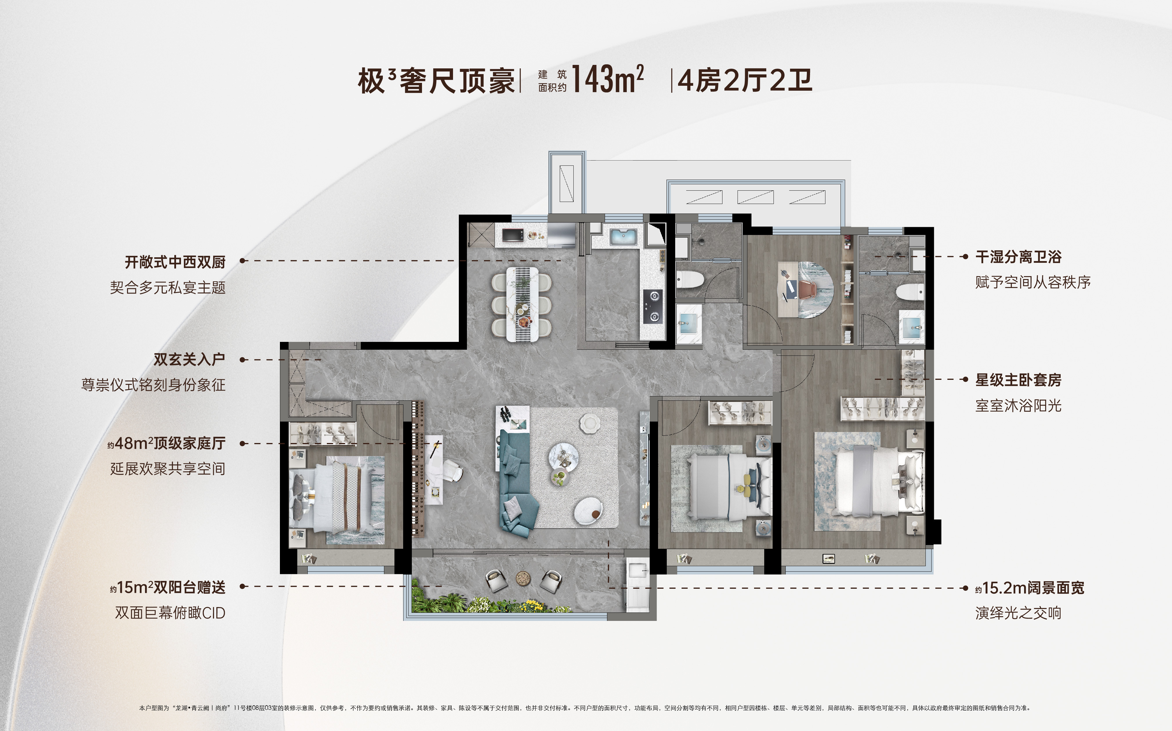 这款“王牌爆品”,可能是目前西安同面积段在售或将推项目中,比较经典的143户型。四房两厅两卫设计,完美符合多孩家庭选择。四开间朝南+约15.2米南向阔景面宽,让视觉度、通透性拉满;约48m2会所式聚会厅,LDKB(餐客厨阳台一体化)空间设计,大大提升空间体验感,孩子的毕业典礼、太太的生日派对、节假日的家庭聚会,都能充分容纳。