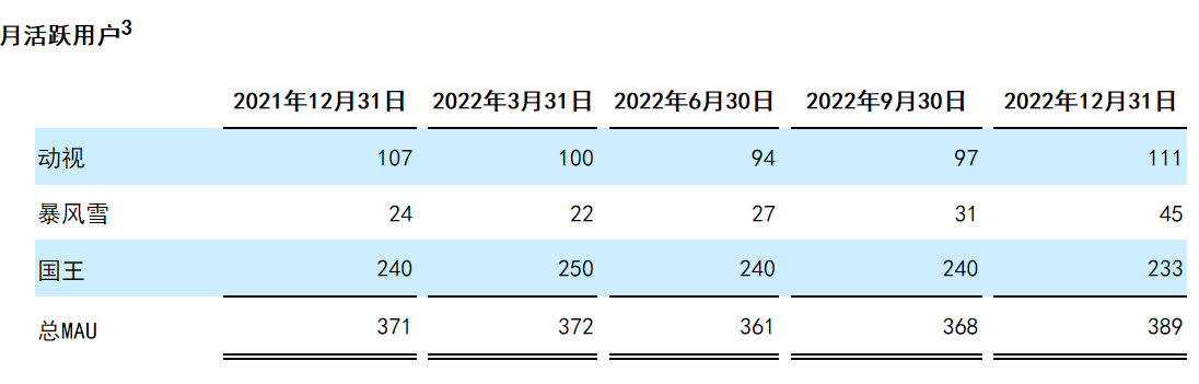 并且,从运营指标来看,截至2022年末,动视暴雪月活跃用户为3.89亿,相较上年同期的3.71亿同比增长了4.85%,月活用户总数维持了稳步增长。