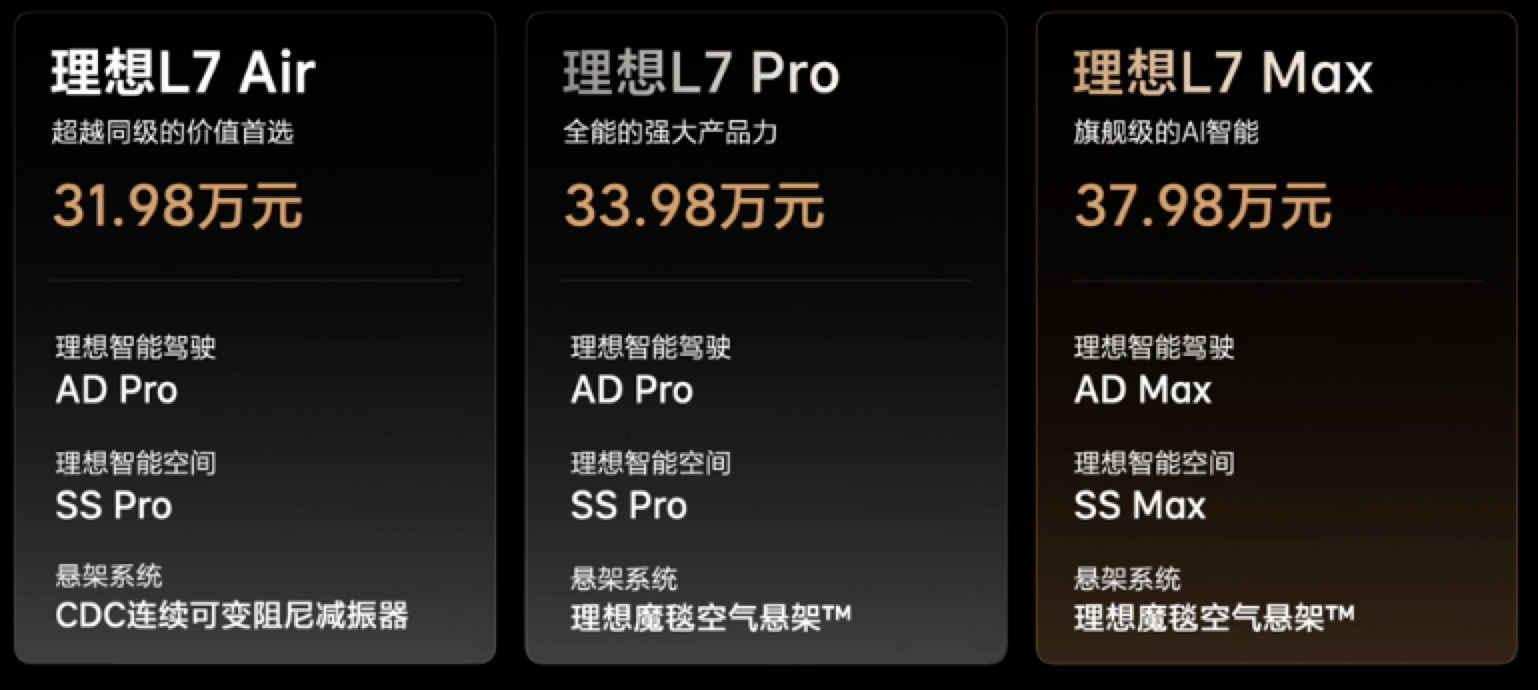 同时,理想推出理想L8 Air,售价为33.98万元,理想L8 Air也将在4月初陆续开启交付。到目前为止,理想L7、理想L8、理想L9产品线布局全部完成。