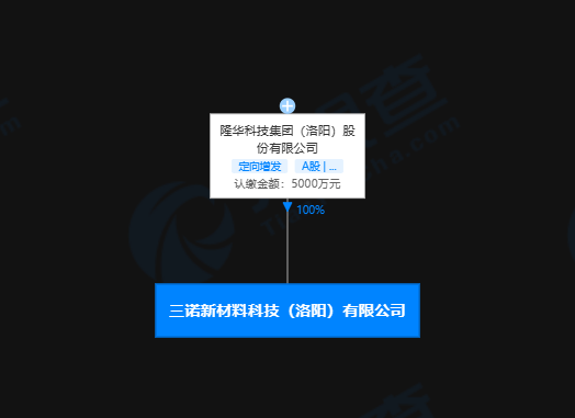 2月9日,天眼查显示,近日,三诺新材料科技(洛阳)有限公司成立,法定代表人为王亚涛,注册资本5000万元,经营范围包含:化工产品生产(不含许可类化工产品);化工产品销售(不含许可类化工产品);新材料技术研发等。股权穿透显示,该公司由隆华科技100%控股。