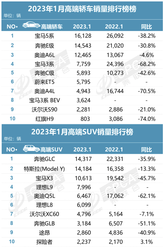 据中国汽车流通协会汽车市场研究分会(乘联会)最新零售销量数据统计,1月份国内狭义乘用车市场零售销量达129.3万辆,同比下降37.9%,环比下降40.4%。其中,特斯拉Model 3销量为12659辆,同比增长327.7%;Model Y销量为14184辆,同比下降13.3%。