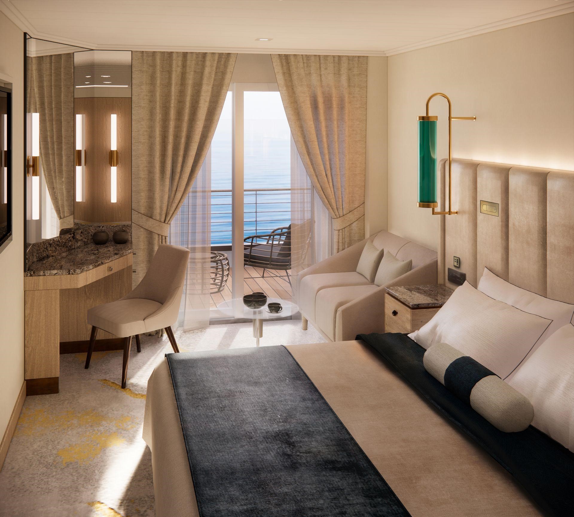 如今,水晶邮轮的这两艘游轮翻新归来,翻新后的船只拥有更大的客舱,并通过减少舱房的总数和客人数量来提供居住平均面积和船上体验。舱房也将使用新家具,并用意大利大理石来布置,墙纸和饰面也会进行全面翻新,床上则铺上精美的棉床单。
