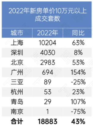 据统计,去年全国核心城市单价10万以上住宅成交1.88万套,其中上海成交了1.02万套,占比达63%。同时,2022年上海土地、新房、二手房三项成交金额在全国范围均获第一,且均大幅领先于第二位广州、北京、杭州等一线城市,足见上海的整体经济实力和楼市韧性。