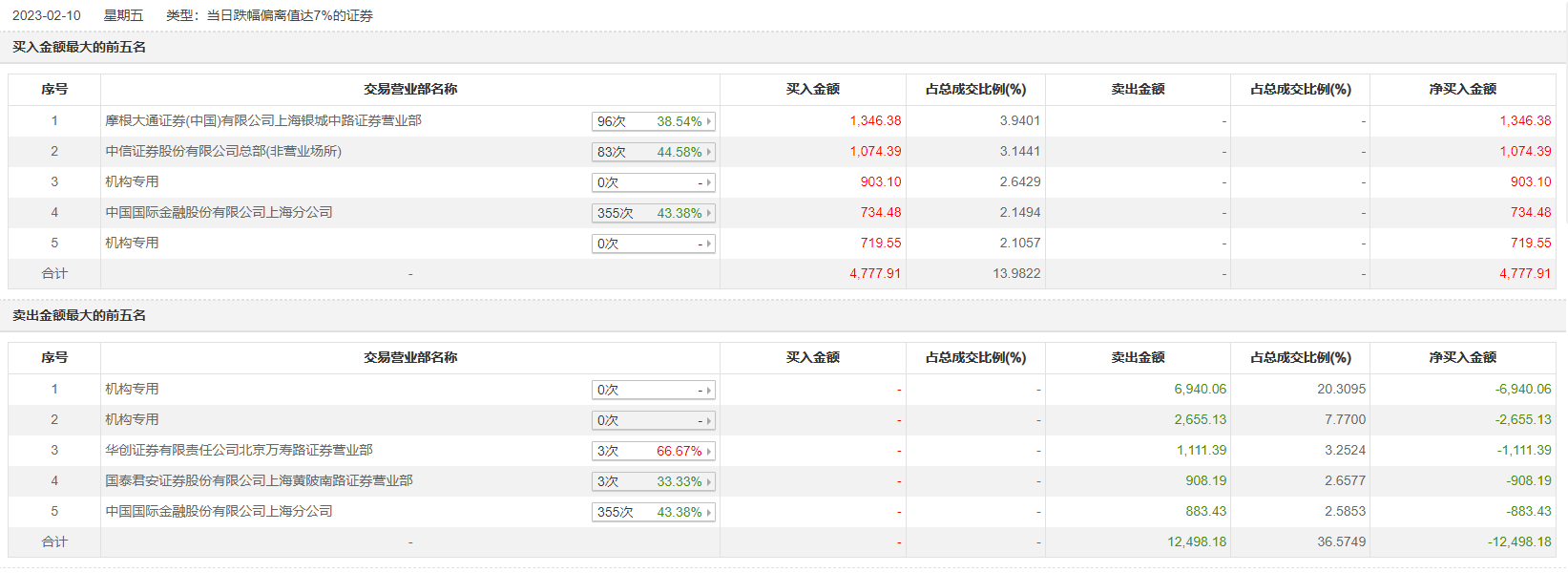 具体来看,机构买入1622.66万元,卖出9595.18万元,合计净卖出7972.52万元。此外,华创证券北京万寿路证券营业部、国泰君安证券上海黄陂南路证券营业部分别卖出1111.39万元、908.19万元;摩根大通上海银城中路证券营业部、中信证券总部(非营业场所)分别买入1346.38万元、1074.39万元。