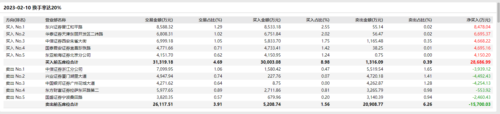 具体来看,知名游资现身龙虎榜,方新侠(中信证券股份有限公司西安朱雀大街证券营业部)净买入4668.22万元、宁波桑田路(国盛证券有限责任公司宁波桑田路证券营业部)净卖出2460.43万元。此外,东兴证券晋江和平路证券营业部、华泰证券天津东丽开发区二纬路证券营业部分别买入8533.18万元、6751.84万元;中信证券浙江分公司、兴业证券厦门湖里大道证券营业部分别卖出5519.54万元、4720.18万元。