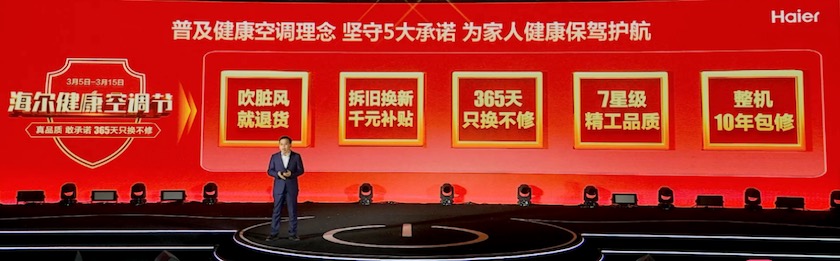除此之外,发布现场,海尔空调宣布第三届“健康空调节”全面开启,将给予用户最全、最实在的用户权益和服务。在用户权益方面,海尔空调推出“吹脏风就退货”品质承诺、卡萨帝系列推出全系空调10年包修、365天只换不修、送拆装一体等保障措施。在服务方面,为促进家电消费,海尔空调还将扩大“健康中国行”等活动范围,让服务下乡、健康焕新活动走进更多用户家中,真正做到便民、利民、惠民。
