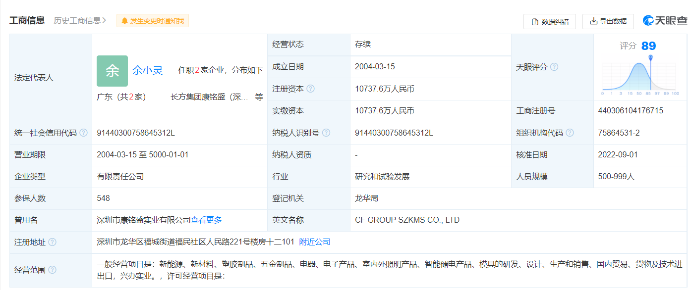 康铭盛成立于2004年,创始人系李迪初和李映红,注册地在深圳市龙华区。