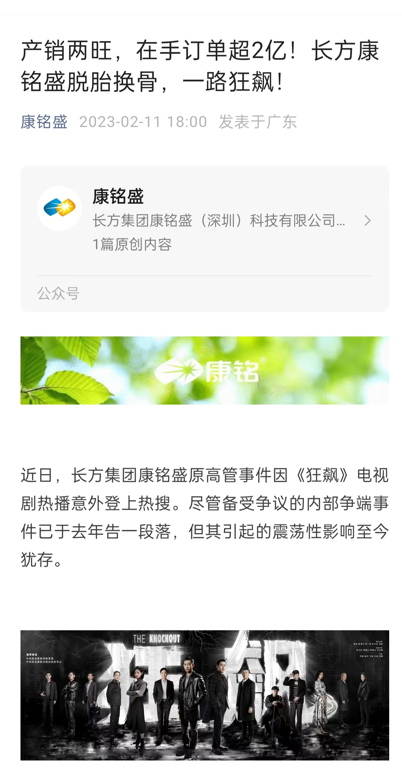这场内斗看似已船过无痕。2023年2月11日康铭盛公众号发文称,其已脱胎换骨,一路狂飙,在手订单已超2亿元。