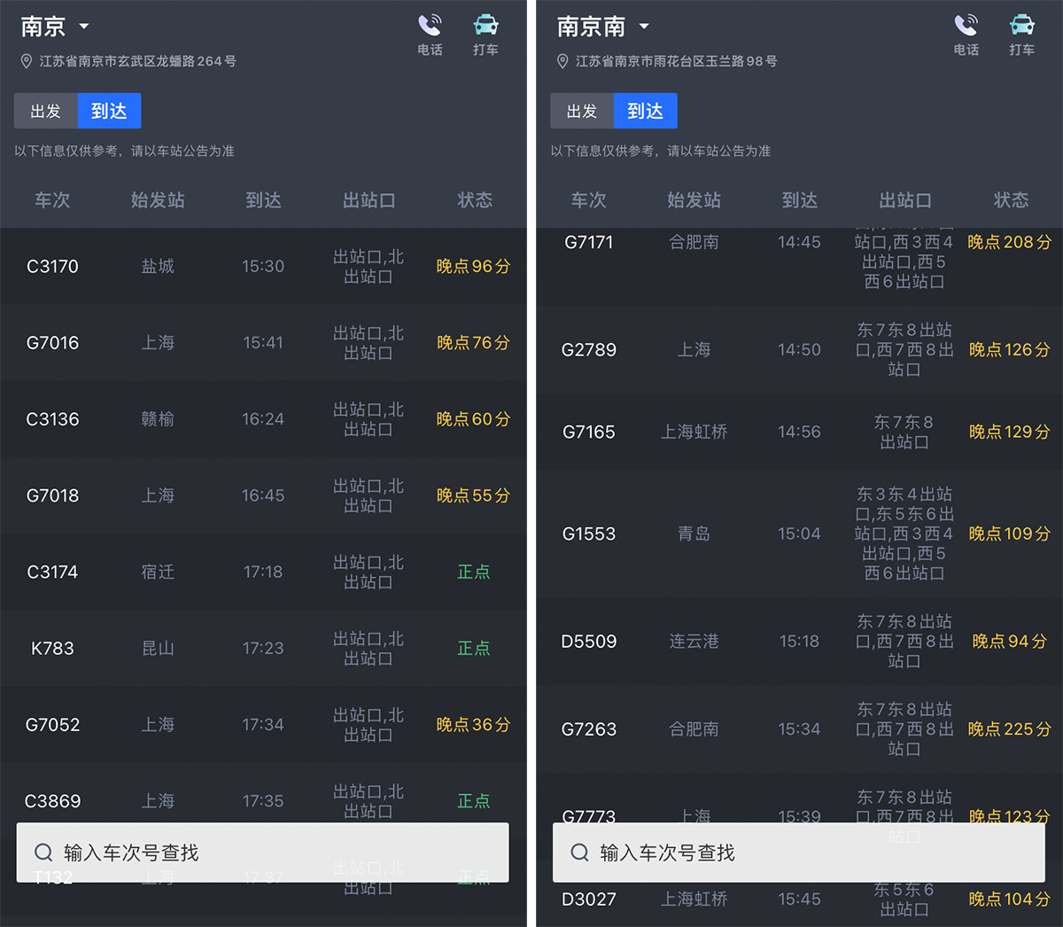 截至2月13日17:30,沪宁城际线路已恢复通车三个半小时,但线路上仍有多趟列车晚点。掌上高铁APP显示,南京站和南京南站开往上海、合肥等地的列车晚点,最长晚点时间接近4小时。