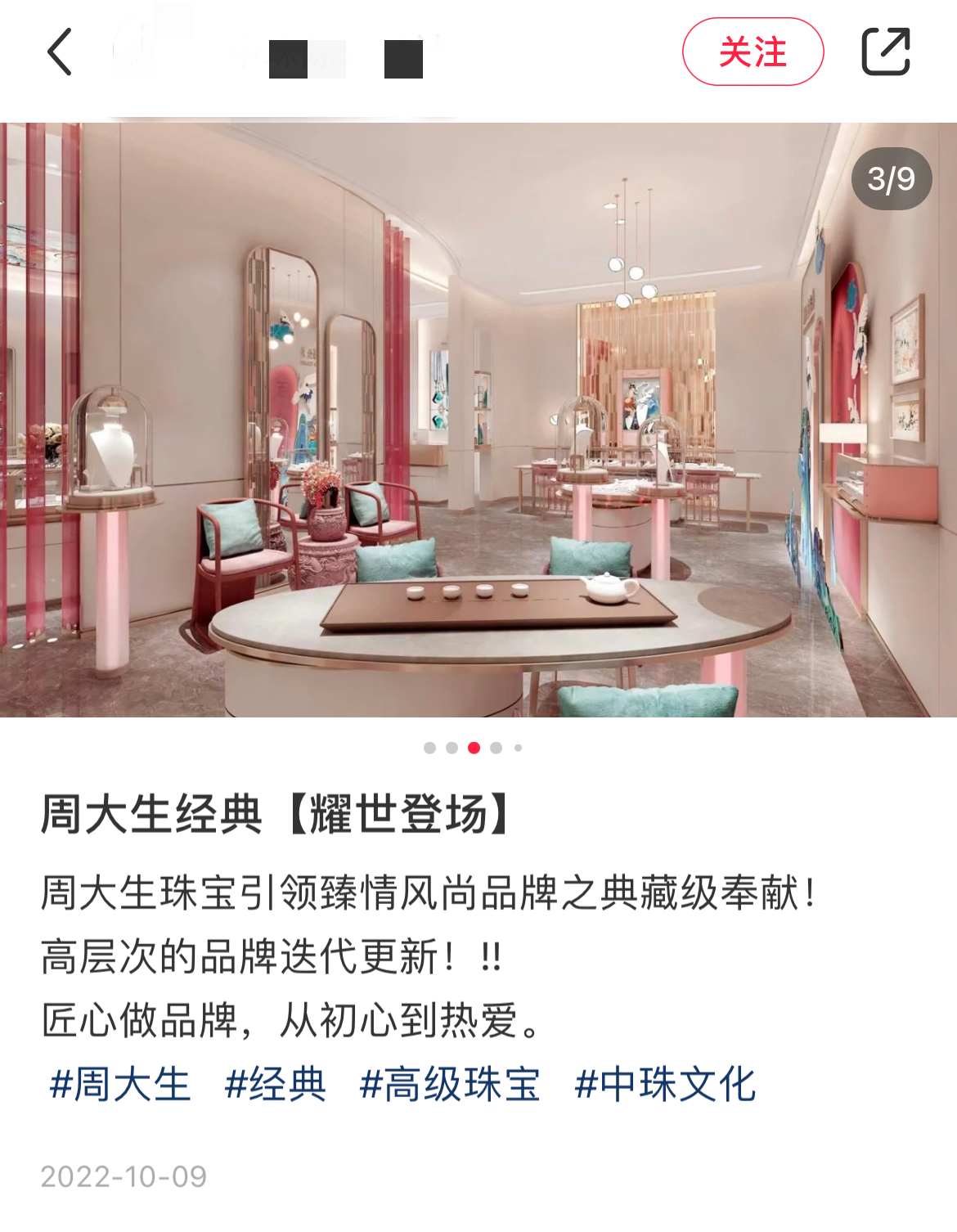 而另一个港资品牌周生生,虽然在中国内地完全开设直营店,不引入加盟商。但为了丰富和巩固其在一线和二线城市的市场份额,该品牌也开设了不同主题的专门店,包括主打新国潮黄金饰品的“周生生华宇”门店,以及更贴近社区零售的“周生生/生生·活宇”概念零售店。